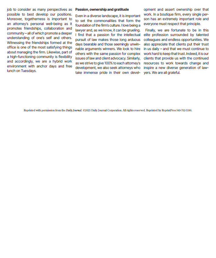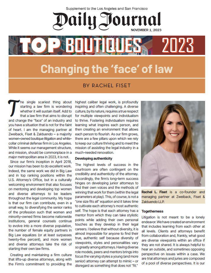 Daily Journal Top Boutiques 2023 – Rachel Fiset on Changing the ‘Face’ of Law