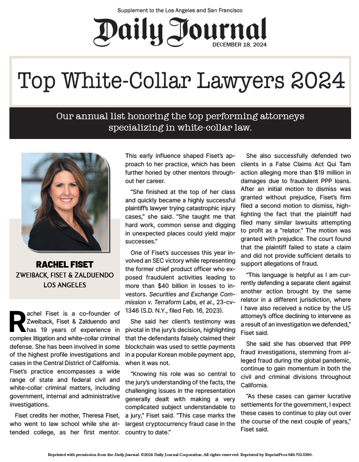 Rachel Fiset Named to Daily Journal’s Top White Collar Lawyers 2024